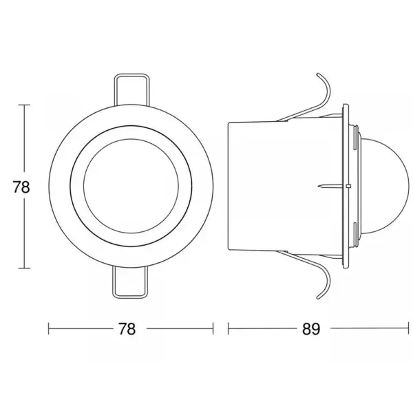 Infrardeči detektor gibanja s kotom zaznavanja 360° in dosegom zaznavanja do Ø 8 m. Primeren za vgradnjo v strop nadstreškov ter v spuščenih stropih znotraj in zunaj (IP54). Narejen iz UV-odporne plastike za dolgo življenjsko dobo. Vključuje pokrove za natančno nastavitev območja zaznavanja. Omogoča kontinuirano nastavitev časa (8 sek. - 35 min.) in občutljivosti osvetlitve (2-2000 luksov). Zanesljivo vklopi kateri koli vir svetlobe s skupno maksimalno obremenitvijo do 1000 W, omogoča povezavo do 6 LED diod. Priložen montažni pribor – pakiranje brez plastike.