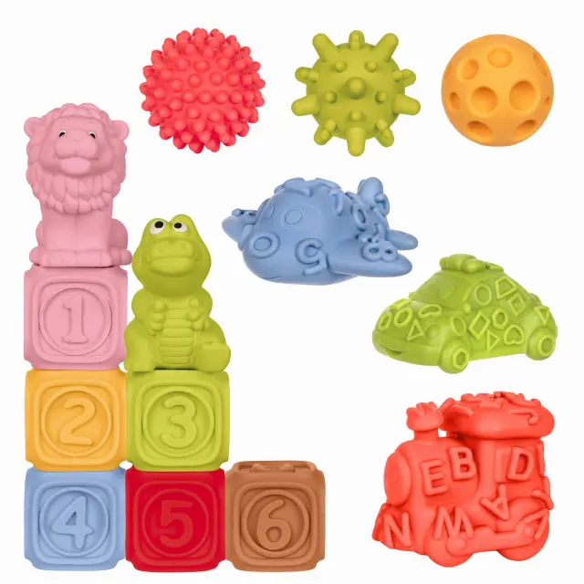 Senzorični bloki, vozila, žogice - izobraževalni komplet Montessori 14 kosov.