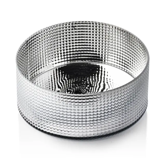 SERENITE Okrasna skleda ¶ 22,5xV:10cm Okrogla okrasna skleda je praktičen pripomoček, primeren za moderno in tradicionalno notranjost. Narejena je iz stekla. Edinstvena tekstura stekla daje skledi neverjeten čar in jo naredi za čudovit namizni okras. Okrasna skleda iz serije SERENITE SILVER podjetja MONDEX. Ročno izdelana z največjo natančnostjo Kombinacija lepote in funkcionalnosti Privlačen oblikovalski element Odličen videz v različnih notranjostih Visokokakovostna izdelava Ne vlivajte vode neposredno v skledo Ne uporabljajte ostrih orodij, da ne poškodujete srebrne dekorativne plasti v notranjosti Dimenzije Širina: 22,5 cm Globina: 22,5 cm Višina: 10 cm