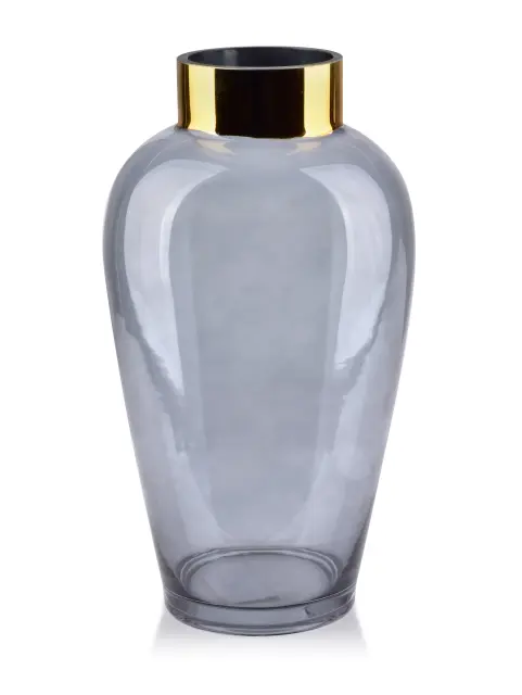 SERENITE Vaza 17xh32cm Steklena vaza Serenite, proizvedena s strani podjetja MONDEX, ki ima dolgo tradicijo od leta 1986, je prava izbira za tiste, ki želijo svojemu bivalnemu prostoru dodati kanček elegance. Njena dimno siva barva v kombinaciji z zlatim kalikom na dnu vaze ustvarja sofisticiran videz, ki se odlično poda v sodobne notranje prostore. Ta vaza ne služi le kot posoda za rože, temveč predstavlja tudi izjemen dekorativni element, ki lahko obogati vsak kotiček vašega doma.Kolekcija SERENITE je zasnovana z mislijo na vsakodnevno estetiko in udobje. Unikatne oblike in barve vaz iz te kolekcije so v skladu z aktualnimi trendi, hkrati pa zagotavljajo brezčasno eleganco. Ne glede na to, ali boste vanjo postavili sveže rezano cvetje ali umetne rastline, bo ta vaza vaš prostor brez dvoma naredila prijetnejši in bolj vabljiv. Dimenzije vaze so skrbno načrtovane, saj premer odprtine znaša 17,5 cm, višina pa 33 cm, kar omogoča raznovrstne možnosti aranžiranja.Podarjanje cvetja je vedno odlična ideja, vendar ga s to vazo podarite v popolnoma novi luči. Vaza Serenite je idealen dodatek pri obdarovanju, saj v kombinaciji s cvetjem prinaša veselje in zadovoljstvo tistim, ki jo prejmejo. S težo 1,202 kg in stabilno strukturo pričara dodaten užitek ob uporabi. Uredite svoj dom z vazo, ki združuje funkcionalnost in estetiko ter mu dajte povsem novo dimenzijo.