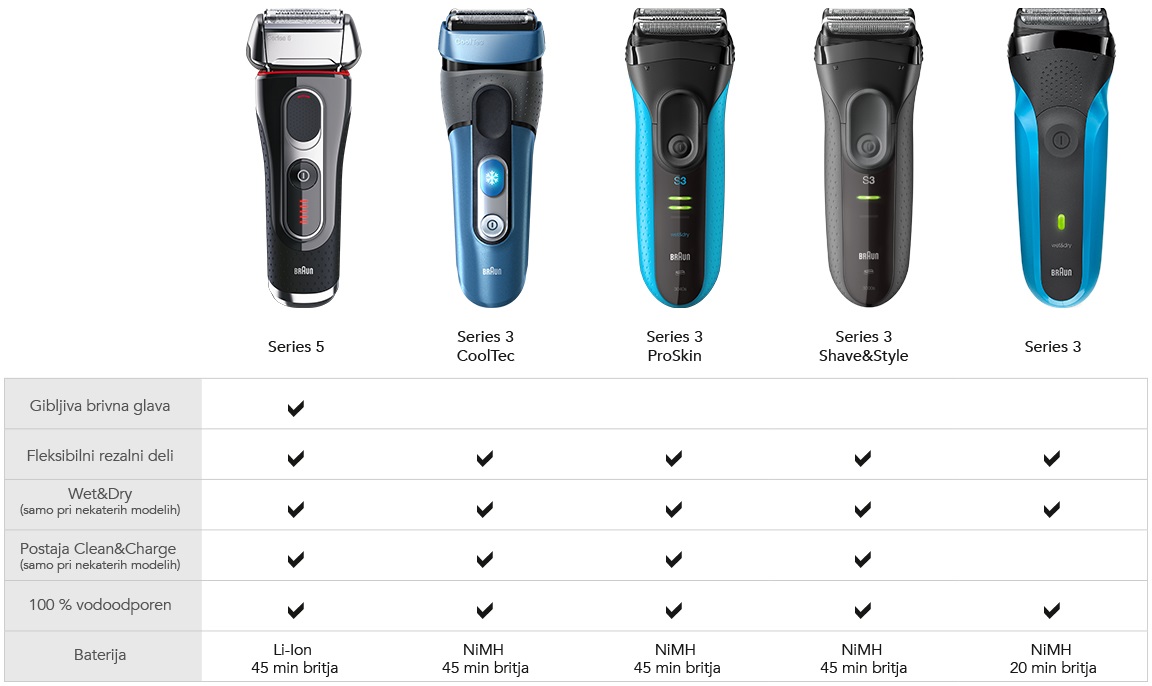Vsi Braunovi brivniki so vodoodporni do 5 metrov. Za enostavno in higiensko čiščenje jih lahko sperete pod tekočo vodo.