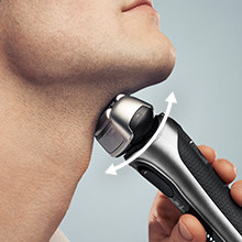 Izjemno prilagodljiva brivna glava, ki je gibljiva v območju 40°, se prilagaja in doseže tudi območja pod brado in na vratu, ki jih je najtežje obriti.