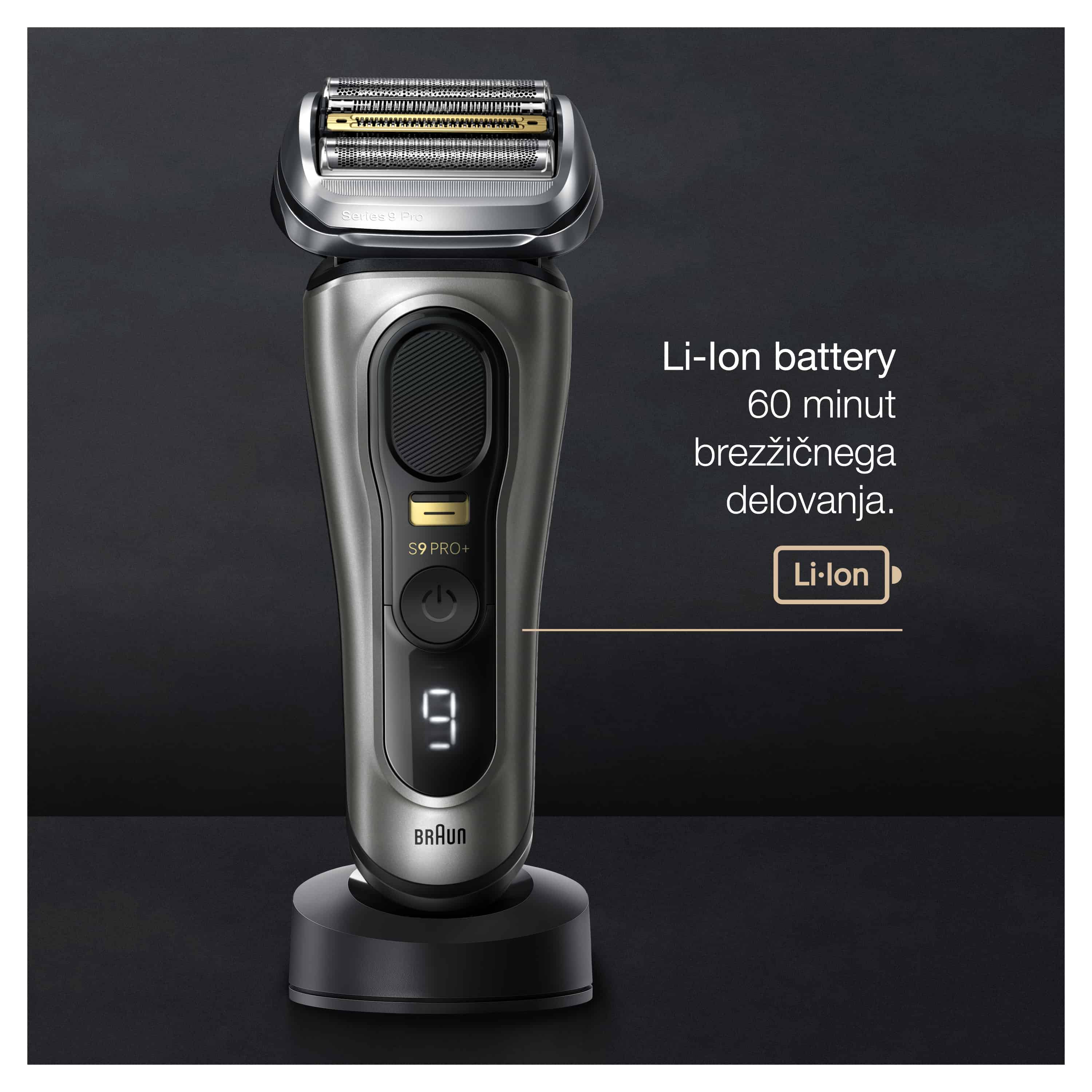 Priskrbite si električni brivnik Series 9 PRO+, ki postavlja nova merila v britju, tako da zagotavlja izjemno natančnost in udobje na koži. Brivnik Series 9 PRO+ s petimi specializiranimi elementi ProShave, vključno z rezilom ProLift, zagotavlja učinkovito in nežno britje z vsako potezo, ne glede na to, ali gre za 1-, 3- ali 7-dnevno brado. Poskrbite za skrajno natančnost, ki jo nudi natančni prirezovalnik ProTrimmer, izdelan iz nerjavečega jekla kirurške kakovosti, ki popolno prireže tudi najdaljše dlake, zalizce in brke. V celoti izdelan v Nemčiji in zasnovan, da vzdrži, vsak dan, celo vrsto let. Z učinkovito Li-ion baterijo za 60 minut delovanja. Za mokro ali suho britje.