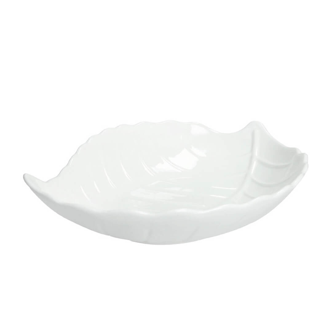 Servirna skleda v obliki lista, dimenzije 31x22 cm, bo zagotovo pritegnila pozornost in dodala čar vaši jedilni mizi. Navdihnjena z naravo, izžareva prefinjenost in eleganco, ki bo očarala vsakega gosta. Izdelana je iz porcelana, ki zagotavlja trpežnost, gladko površino in izjemno estetsko privlačnost. Njena čudovita bela barva in subtilna tekstura bodo lepo dopolnili vsako jedilno garnituro in ustvarili vzdušje miru in harmonije. Idealna je za serviranje različnih jedi – od solat, prilog in sadja do prigrizkov ali sladic. Primerna je za pomivanje v pomivalnem stroju.