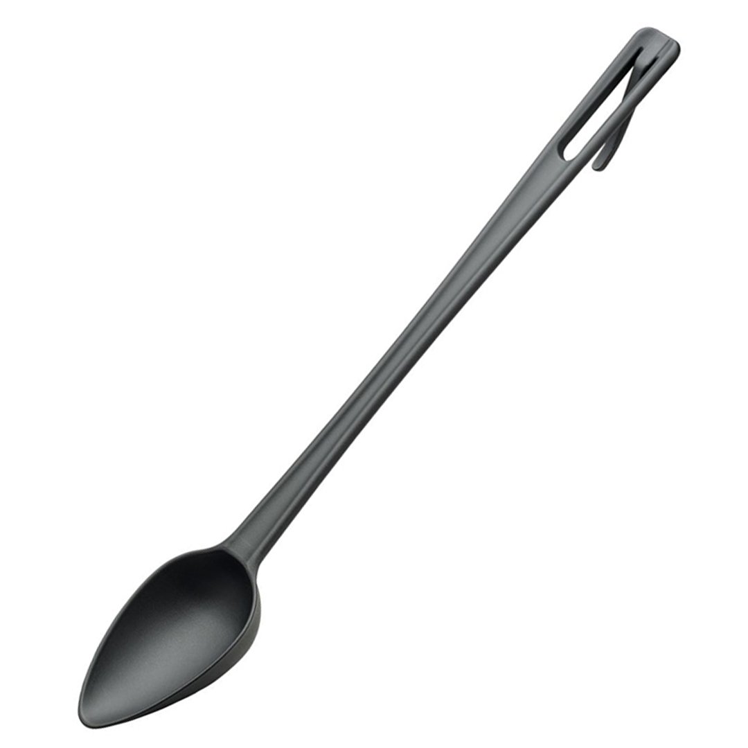 Servirna žlica Highgrade Professional je idealna za uporabo v posodah, ki so občutljive na ureznine in praske (z non-stick prevleko, keramične posode), saj je izdelana iz visoko odpornega najlonskega materiala, ojačanega z vlakni, ki je odporen na vročino (+ 220°C) ne absorbira arom, okusov in barv hrane in je primeren za pomivanje v pomivalnem stroju. Dolga je 49 cm in jo lahko pospravite tako, da jo obesite na držalo.