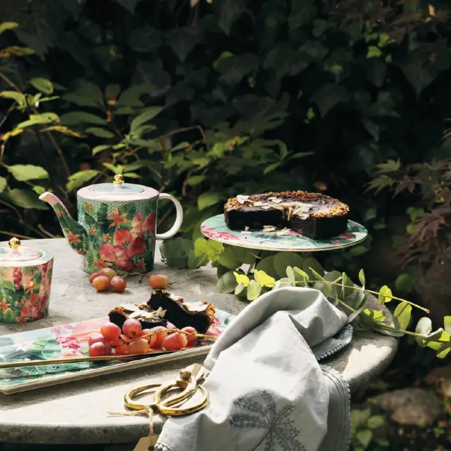 Servirni krožnik Tropicana, blagovne znamke Maxwell & Williams, prinaša živahno energijo tropskega raja na vašo mizo. Z dimenzijo 25,5 x 11,5 cm je idealen za postrežbo sladic, prigrizkov ali sadja, hkrati pa navdušuje s čudovitim dizajnom. Linijo Tropicana krasijo bujno tropsko listje in ingverjeve lilije v očarljivi mešanici roza, modre in zelene, ki ustvarjajo osvežujoč in eksotičen videz. Zlati robovi s cvetličnimi poudarki poskrbijo za dodaten pridih razkošja. Izdelan je iz kakovostnega porcelana, zato je popoln za vsakodnevno uporabo ali posebne priložnosti. Ni primeren za uporabo v mikrovalovni pečici in pomivanje v pomivalnem stroju. NAMIG: Servirni krožnik dopolnite z ostalimi izdelki iz iste linije Tropicana.