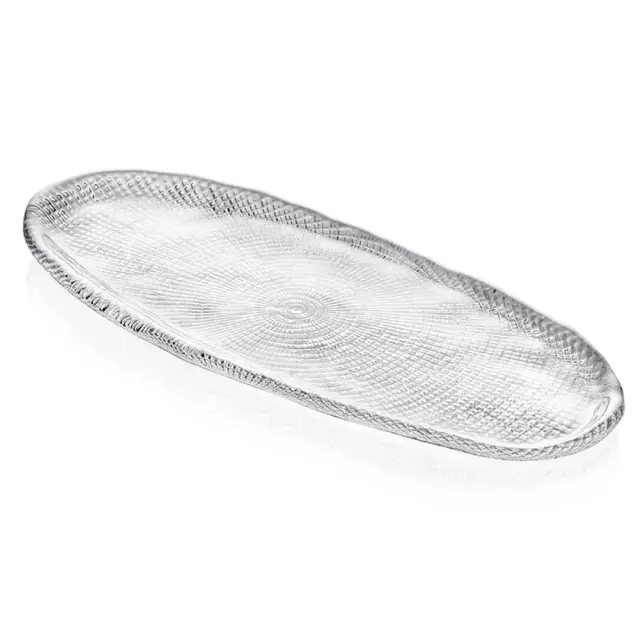 Servirni krožnik Diamante blagovne znamke IVV je elegantna izbira za vsako priložnost, dodajajoč pridih prefinjenosti vsaki mizi. Izdelan je iz kakovostnega stisnjenega stekla, ki združuje funkcionalnost in estetsko privlačnost. Značilen dizajn na zunanji strani reproducira diamantni vzorec, ki ustvarja nepravilno površino, ki je še posebej sijoča in prijetna na dotik. Ta prefinjen vzorec daje krožniku unikaten videz, ki se bo odlično ujemal s sodobnimi in klasičnimi namiznimi aranžmaji. Dimenzija krožnika 43 x 16 cm omogoča dovolj prostora za postrežbo različnih vrst hrane, od prigrizkov in predjedi do glavnih jedi in sladic. Zaradi svoje robustne konstrukcije iz stekla je krožnik trpežen in primeren za vsakodnevno uporabo ali posebne priložnosti. Njegova odpornost na praske in madeže zagotavlja dolgo življenjsko dobo in ohranjanje njegovega bleščečega videza. Primeren je za pomivanje v pomivalnem stroju.