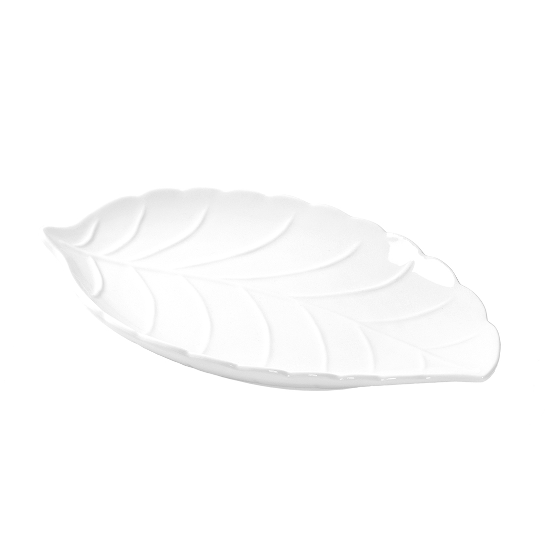 Servirni krožnik v obliki lista, dimenzije 26x18 cm, bo zagotovo pritegnil pozornost in dodal čar vaši jedilni mizi. Navdihnjen z naravo, izžareva prefinjenost in eleganco, ki bo očarala vsakega gosta. Izdelan je porcelana, ki zagotavlja trpežnost, gladko površino in izjemno estetsko privlačnost. Njegova čudovita bela barva in subtilna tekstura bodo lepo dopolnili vsako jedilno garnituro in ustvarili vzdušje miru in harmonije. Njegova oblika omogoča enostavno razporeditev in elegantno predstavitev različnih jedi, kar bo zagotovo navdušilo vaše goste. Ni primeren za uporabo v mikrovalovni pečici in pomivanje v pomivalnem stroju.