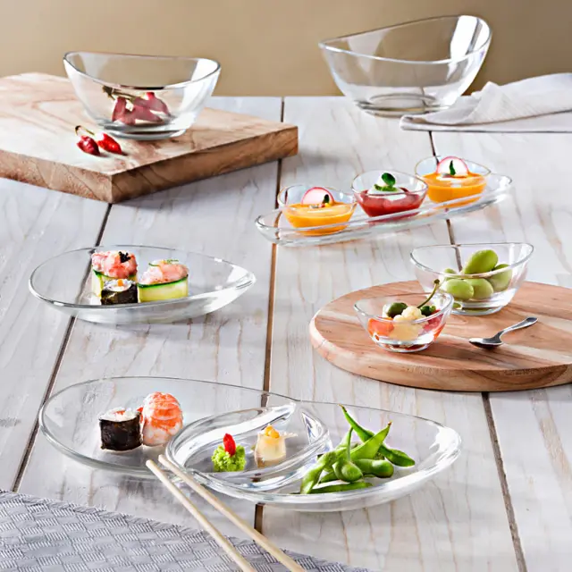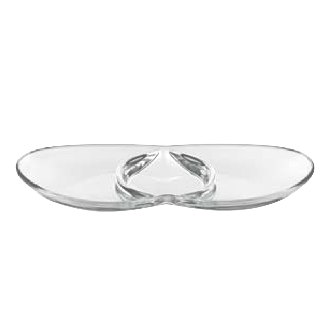 Servirni krožnik Papaya je izdelan iz kakovostnega in trpežnega stekla. Razdeljen je na tri dele, kar omogoča serviranje različnih omak, namazov in prigrizkov, ne da bi se živila med seboj mešala. Ovalna oblika in elegantne linije se bodo čudovito podale na vsako mizo. Krožnik je primeren za pomivanje v pomivalnem stroju.