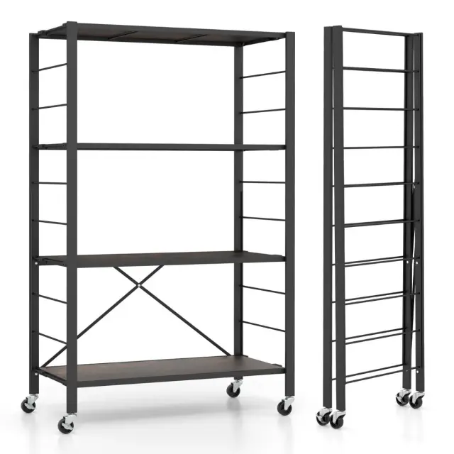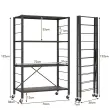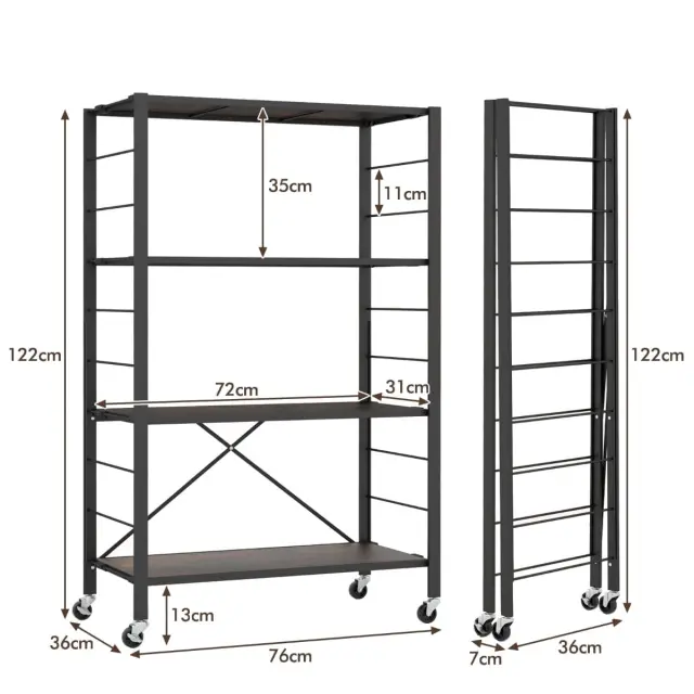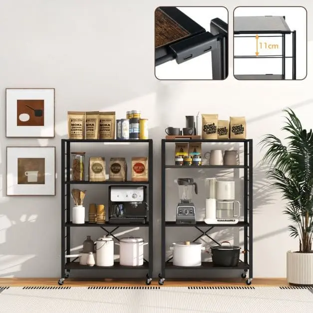 Servirni voziček zložljiv 4 ravni Kuhinjski voziček z odstranljivimi kolesi 76 x 36 x 122 cm Črna + rustikalna rjava