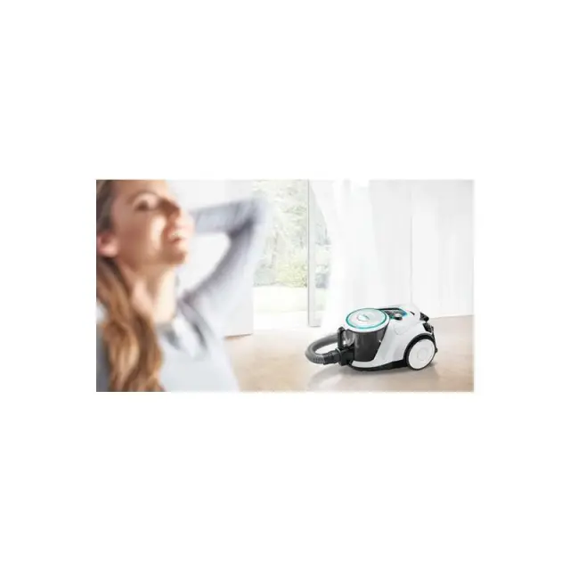 Sesalnik Bosch Serija 6 BGC41XHYG je sodoben in funkcionalen sesalnik brez vrečke, bele barve. Z močjo sesanja 700 W omogoča učinkovito čiščenje doma. Ima posodo za prah prostornine 2,4 litra in higienski filtrirni sistem z UltraAllergy filtrom, ki zagotavlja prečiščen zrak. Opremljen je s teleskopskim cevjo in različnimi nastavki za čiščenje različnih površin. Doseg delovanja je 10 metrov, vhodna napetost 220-240 V, raven hrupa 68 dB, kar omogoča relativno tih delovanje. Dimenzije: približno 324 mm širine, 474 mm globine, 267 mm višine, teža: 8,2 kg. Ergonomska zasnova olajša prenašanje in shranjevanje.