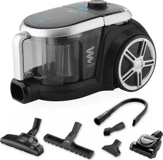 ETA Stormy Car je zmogljiv in učinkovit sesalnik brez vrečke, primeren za vse vrste površin. Njegova ciklonska tehnologija zagotavlja stalno sesalno moč, medtem ko HEPA filter razreda 13 ščiti vaše zdravje. S prozornim 2,2 L rezervoarjem in različnimi dodatki olajša čiščenje tudi na težko dostopnih mestih, kot je vaš avto. Sodobna črna zasnova in lahka teža 4,3 kg omogočata enostavno uporabo. Ohranite svoj dom brezhiben s tem nepogrešljivim aparatom.