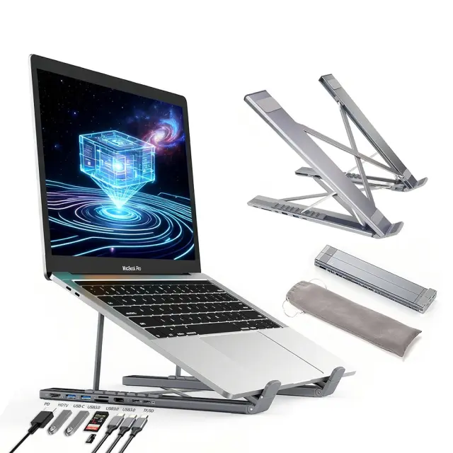 Ergonomska oblika in udobje: Prosimo, upoštevajte: to niso originalni deli. To nastavljivo stojalo za prenosnik, zasnovano z mislijo na ergonomijo, dvigne vaš zaslon v višino oči, kar spodbuja boljšo držo in zmanjšuje obremenitev vratu, ramen in hrbtenice. Izvlečna zasnova vam omogoča, da prilagodite višino in kot za optimalno udobje gledanja. Popoln za dolge delovne seje, to stojalo pomaga preprečevati nelagodje in spodbuja bolj zdravo delovno okolje. Združljiv je z blagovnimi znamkami Huawei, Samsung, APPLE, Garmin in drugimi.
