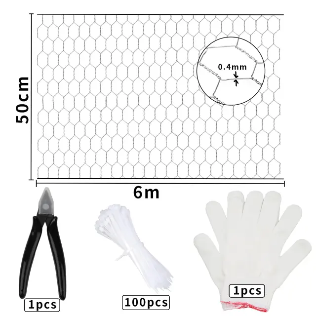 Šesterokotna žična mreža dimenzij 40 cm x 6 m je trpežna in univerzalna rešitev za urejanje vrta ter varno vzrejo malih živali. Zahvaljujoč drobnim očesom in robustni žici izdelek učinkovito ščiti vaše rastline, priloženi dodatki pa poskrbijo za popolno uporabniško izkušnjo. Zagotovite si svojo mrežo še danes in poskrbite za urejeno in varno okolje.