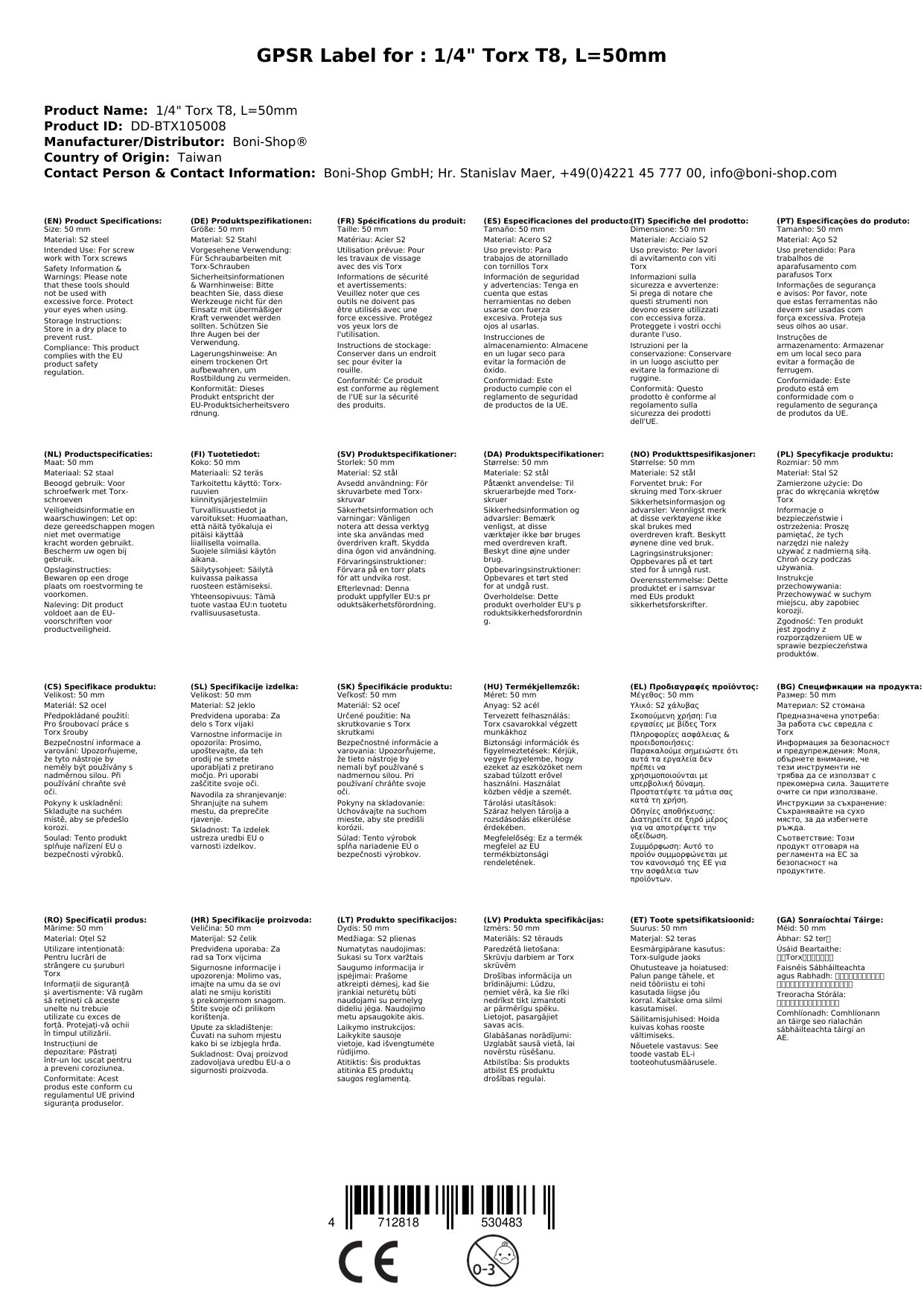 Uporabite ta zanesljiv šestkotni bit T8 pri montažnih delih, elektronskih popravilih ali pri vsakodnevnih projektih, kjer je potrebna visoka natančnost. Ne zamudite priložnosti in si zagotovite izdelek, ki bo postal nepogrešljiv del vaše orodjarne. Naročite zdaj in izboljšajte svoje delo z našim kakovostnim šestkotni bitom T8!