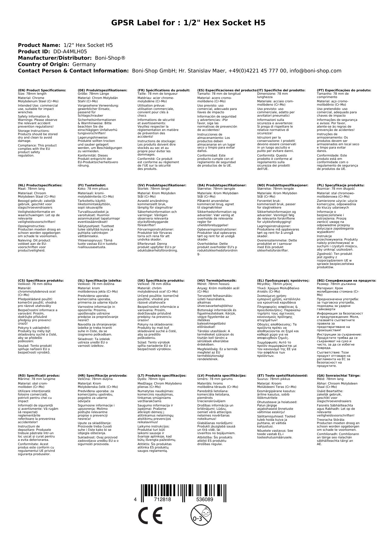 Predstavljamo vam izjemno trpežen šestkotni ključ 1/2" H5, izdelan iz krom-molibden jekla (Cr-Mo), ki zagotavlja vrhunsko trdnost in dolgo življenjsko dobo. S svojo 78 mm dolžino ta nastavek omogoča enostaven dostop do globlje ležečih vijakov, kar je idealno tako za udarne kot tudi ročne vijačnike.