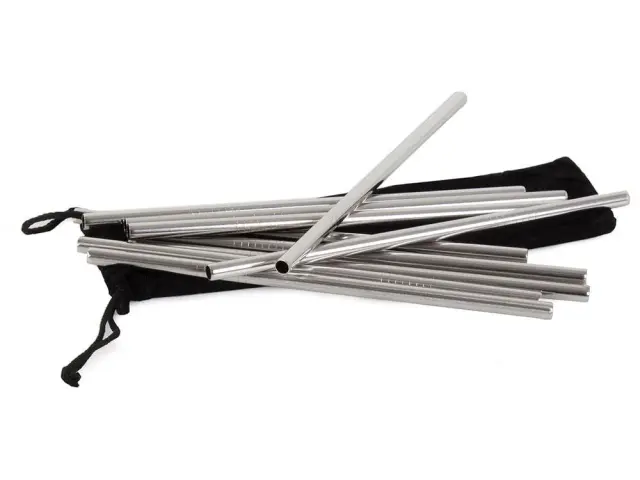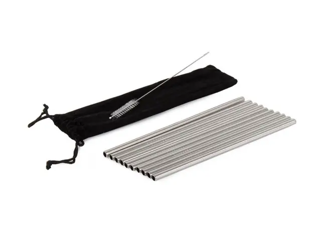 Set 10 inox ravnih kovinskih slamic za večkratno uporabo + krtačka