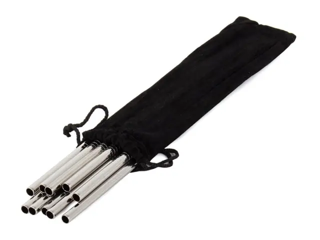 Material: nerjaveče jeklo Čistilna krtačka vključena Enostaven za čiščenje Dimenzije slamice: 21,7 cm x 0,7 cm Ravna slamica Srebrne barve Etui iz mehkega, črnega materiala