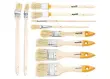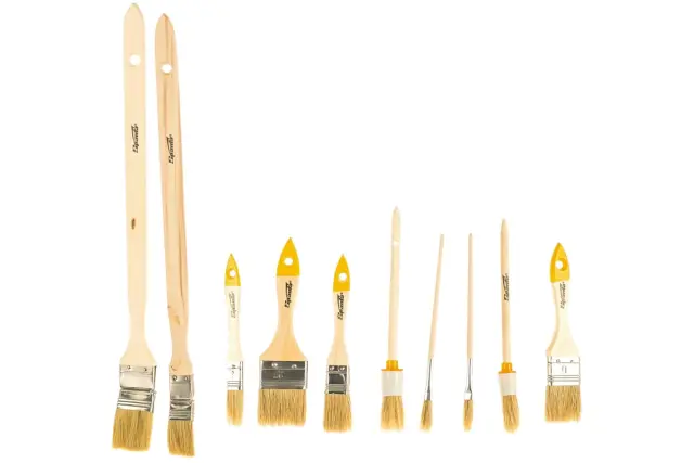 Ščetine so na koncih razcepljene, kar izboljša lastnosti prenosa barve na čopičih. Komplet vključuje 3 /4″ ploščati čopiči in 2 palca, okrogli št. 2, št. 4, radiator 1 in 1,5 palca ter dva št. 2 in št. 6 za oljne barve za udobje dela na različnih področjih, vključno s težko dostopnimi in ozke Na ročajih so posebne luknje, zahvaljujoč katerim lahko čopiče visijo.