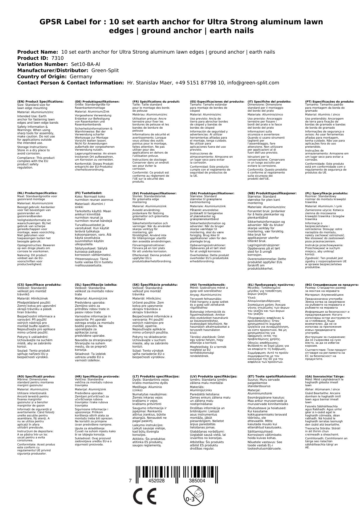 Za dodatne informacije o namestitvi in vzdrževanju, sledite navodilom, ki so vključena v paket. Ta izdelek je odlična izbira za vsakogar, ki si želi brezskrbnega, estetskega in varnega zunanjega prostora. Naročite zdaj in izboljšajte stabilnost vaših alu robnikov ter zagotovite dolgotrajno varnost in urejenost vašega vrta!