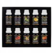 10 RAZLIČNIH VONJEV – celoten set ima 10 različnih vonjev kot so: evkaliptus, pomaranča, meta, sivka, bor, limona, lokvanj, grenivka, limonska trava, bergamotka. Vsa olja so zaprta v stekleničkah s prostornino po 15 ml.