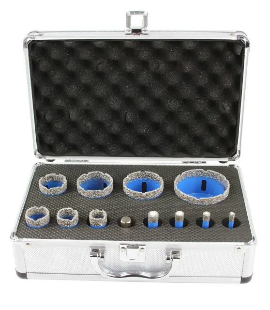 Komplet diamantnih vrtalnih žag velikosti od 6 do 68 mm.