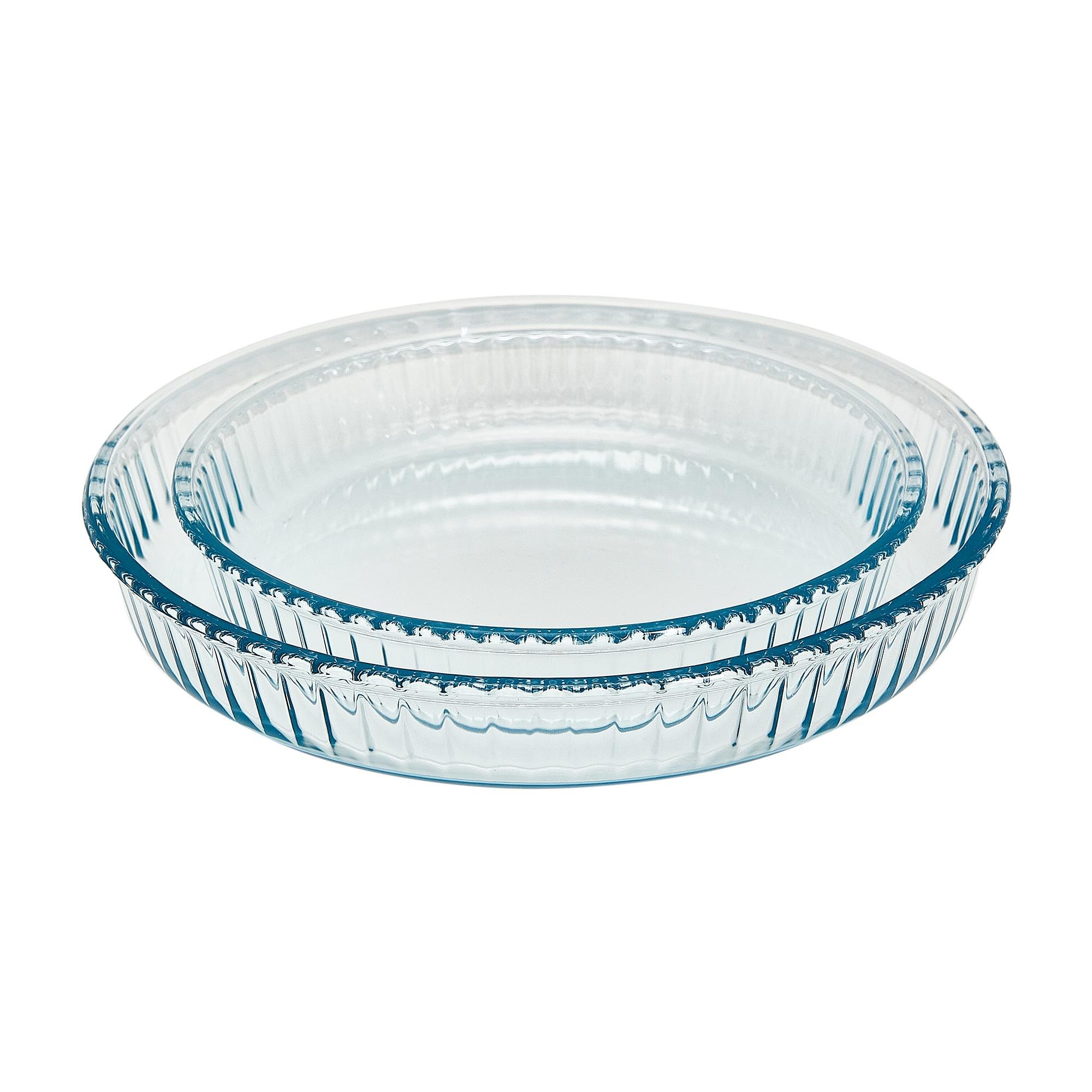SET PEKAČEV ZA PITO BORCAM je sestavljen iz dveh okroglih pekačev s premerom 32 in 26 cm, ki sta izdelana iz toplotno odpornega stekla, zato sta primerna za uporabo v tradicionalni pečici, mikrovalovni pečici in zamrzovalniku, saj vzdržita temperature od -30 °C do 300 °C. Zaradi nizke toplotne prevodnosti se hrana v steklenem pekaču ohlaja veliko počasneje. Zaradi prozornosti stekla lahko hrano med pripravo opazujemo in vidimo pri serviranju ali shranjevanju. Pomijemo ju lahko v pomivalnem stroju.
