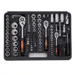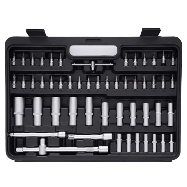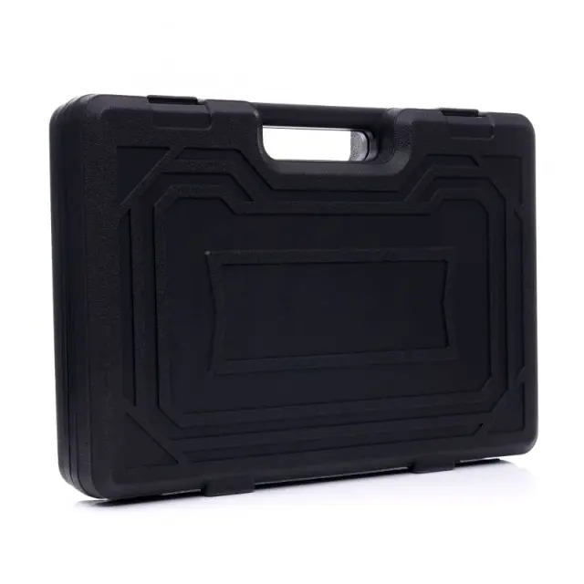 Kovček iz trpežne plastike vam omogoča vzdrževanje reda in enostavno prenašanje orodja. Vsako orodje ima določeno mesto, kjer zlahka najdete želeno velikost ključa.