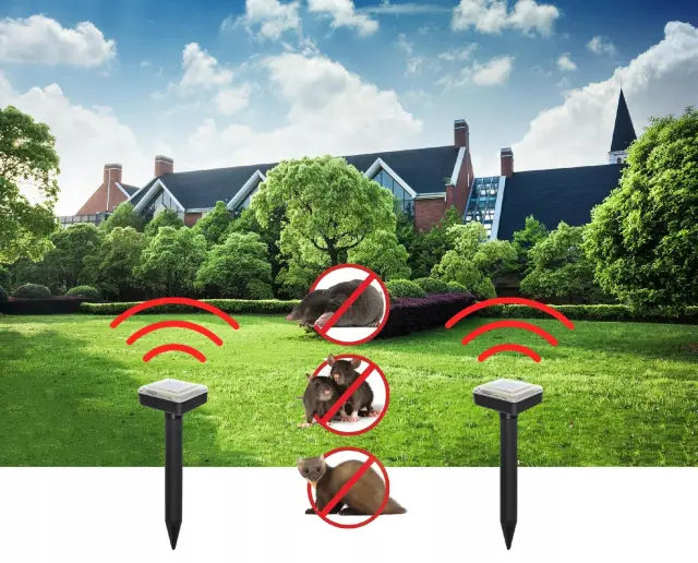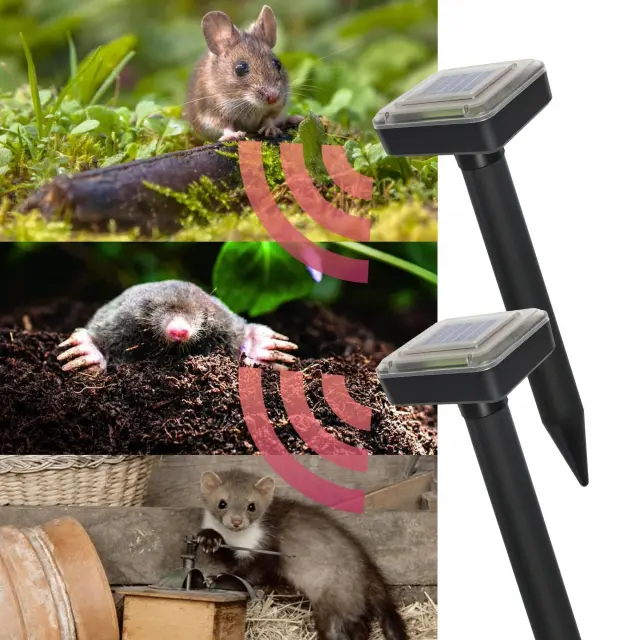 Ste naveličani krtovih rovov in škode, ki jo povzročajo voluharji in miši na vašem vrtu? Ta set dveh solarnih odganjalcev je idealna rešitev za ekološko in učinkovito odganjanje škodljivcev brez uporabe kemikalij ali strupov. Naprava oddaja ultrazvočne vibracije, ki motijo živali in jih prisilijo, da zapustijo območje.
