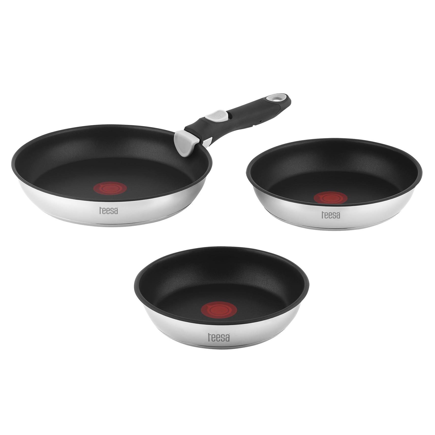 Ta vsestranski komplet združuje kakovostne materiale, premišljen dizajn in praktičnost, kar omogoča enostavno pripravo najrazličnejših jedi. Zahvaljujoč snemljivim ročajem so ponve enostavne za shranjevanje in prilagojene tudi za uporabo v pečici.