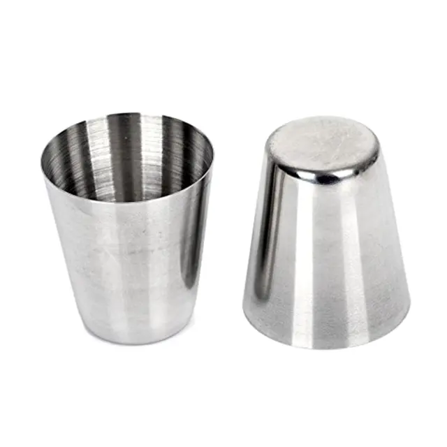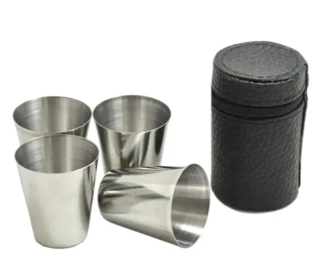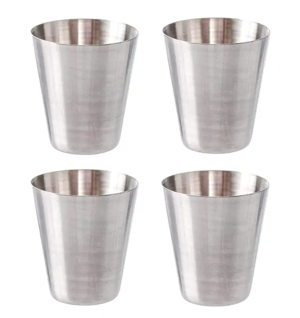Set 4 kozarcev s prostornino 30 ml je izdelan iz nerjavečega jekla, kar zagotavlja visoko vzdržljivost in dolgo življenjsko dobo.