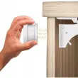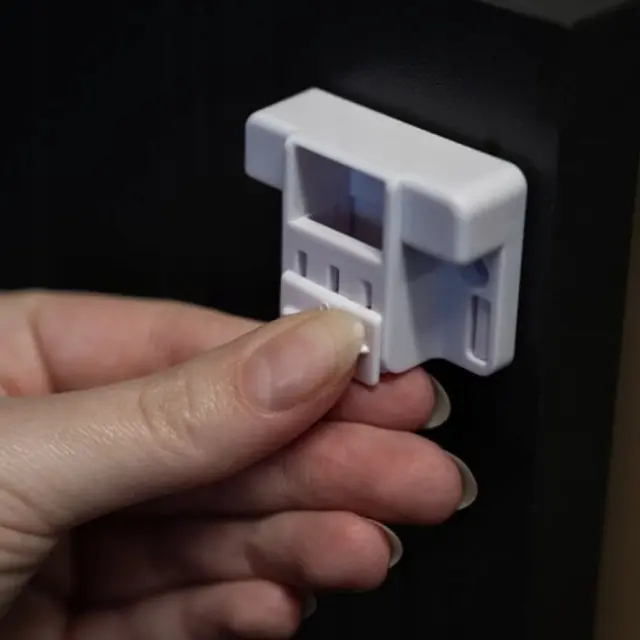 ŠČITI OTROKE – ključavnica otrokom preprečuje odpiranje vrat predalov in omar. Varnost ne le ščiti pred ukleščitvijo majhnih prstkov, ampak otrokom preprečuje tudi dostop do vsebine garderobe (npr. za kemikalije, orodje itd.)