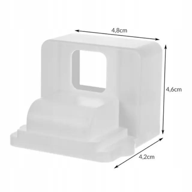 SPECIFIKACIJA – Bela barva; material: plastika; varnostne mere: 4×2,5×4 cm; mere nadvložka: 4,8 x 4,6 x 4,2 cm; teža: 1 kos: 15g