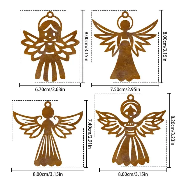 Eleganten poudarek za dom: Povzdignite notranjo opremo s tem setom štirih zlatih železnih angelov. Ti dekorativni kovinski okraski dodajo pridih evropske prefinjenosti in umetnosti vsakemu prostoru. Popolni za ustvarjanje toplega in vabljivega vzdušja, te obeske lahko obesite posamezno ali kot usklajen set, ki dopolnjuje vašo obstoječo dekoracijo. Zlati zaključek zagotavlja razkošen občutek, zapleteni angelski dizajni pa ponujajo edinstveno in privlačno osrednjo točko. Idealno za dnevne sobe, spalnice, vhode ali celo kot poseben dotik praznične dekoracije, ti kovinski umetniški okraski se brezhibno zlijejo z različnimi slogi, od klasičnega do sodobnega, in takoj izboljšajo estetsko privlačnost vašega prostora z izvrstno kovinsko dekoracijo doma.
