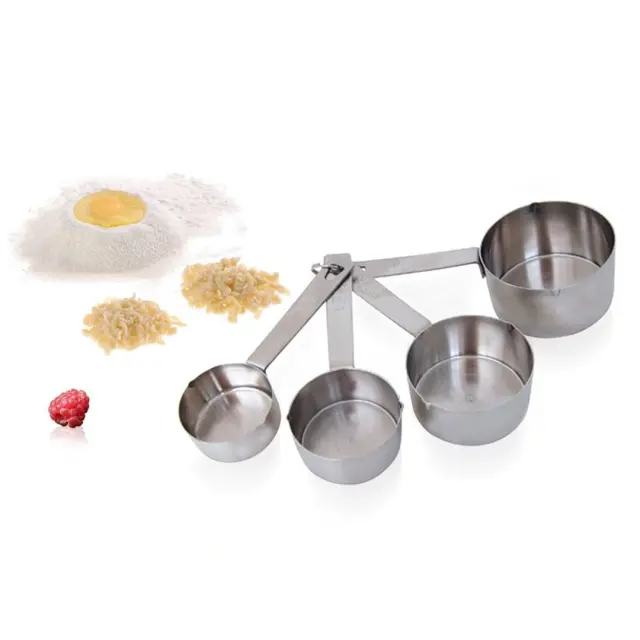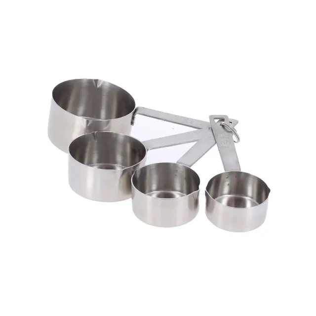 Set 4 De Buyer merilnih skodelic iz nerjavečega jekla v velikosti 60 / 80 / 125 in 250 ml (oz. 1/4 cup, 1/3 cup, 1/2 cup, 1 cup).