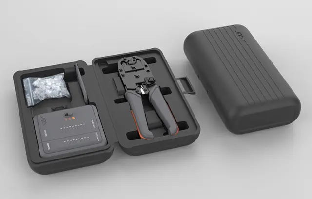 Če se profesionalno ukvarjate z vzdrževanjem in konfiguracijo internetnih omrežij, bo komplet JM-GTW5N popoln spremljevalec pri vašem delu. Komplet je sestavljen iz: dvodelnega testerja signala, stiskalnice za kabel, noža za odstranjevanje lupine in vtičev RJ45, vse skupaj v enem priročnem in privlačnem kovčku. To je komplet, ki vam bo omogočil delo z večino koaksialnih kablov, ki so na voljo na trgu.