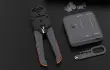 Orodje za stiskanje konektorjev RJ45 vam bo omogočilo ne le namestitev vtiča na kabel, temveč tudi skrajšanje kabla na želeno dolžino in odstranitev izolacije z njega. To je izjemno priročna naprava, ki vam bo prihranila prostor in čas. Poleg tega je stiskalnica opremljena z varnostno napravo, ki ne bo zaščitila le rezila, temveč tudi vaše roke pred poškodbami, udobni gumijasti ročaji pa bodo preprečili nehoten zdrs iz vaših rok.