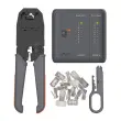 S tem setom orodij boste imeli vse, kar potrebujete za enostavno in učinkovito delo z mrežno opremo. Klešče so izdelane iz kakovostnih materialov in so zasnovane za nevanje mrežnih kablov. UTP tester pa vam omogoča preverjanje povezljivosti in delovanja mrežnih kablov. Pred uporabo klešč preverite, ali so primerno ostri in čisti, pred uporabo UTP testerja pa preverite, ali je baterija napolnjena.