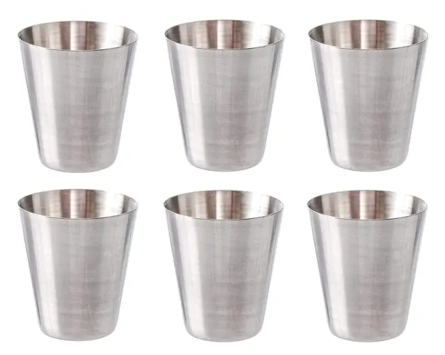 Set 6 kozarcev s prostornino 30 ml je izdelan iz nerjavečega jekla, kar zagotavlja visoko vzdržljivost in dolgo življenjsko dobo.