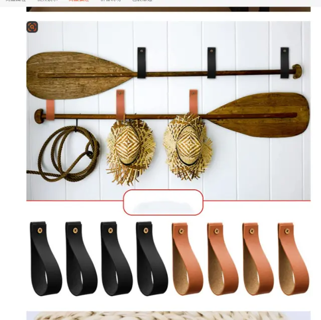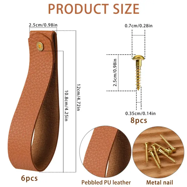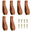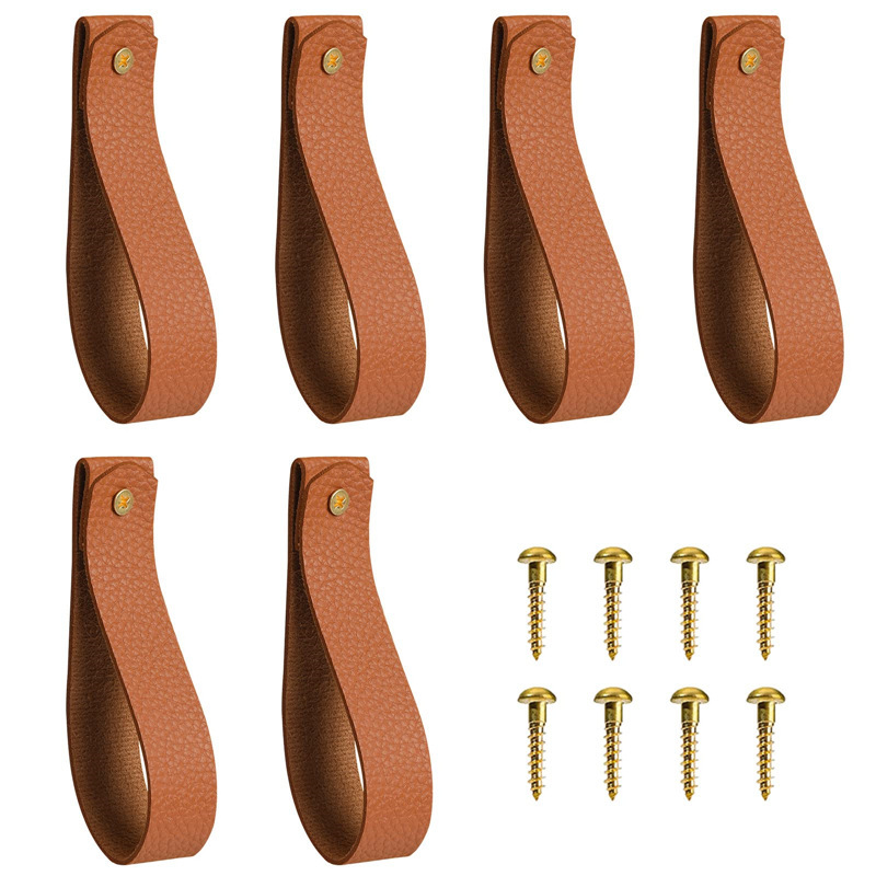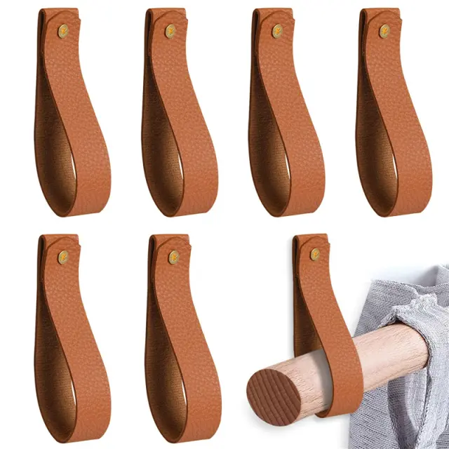 Set 6 Rjavih PU Usnjenih Stenskih Kljuk - Okrasni Viseči Trakovi z Medeninastimi Vijaki Brown