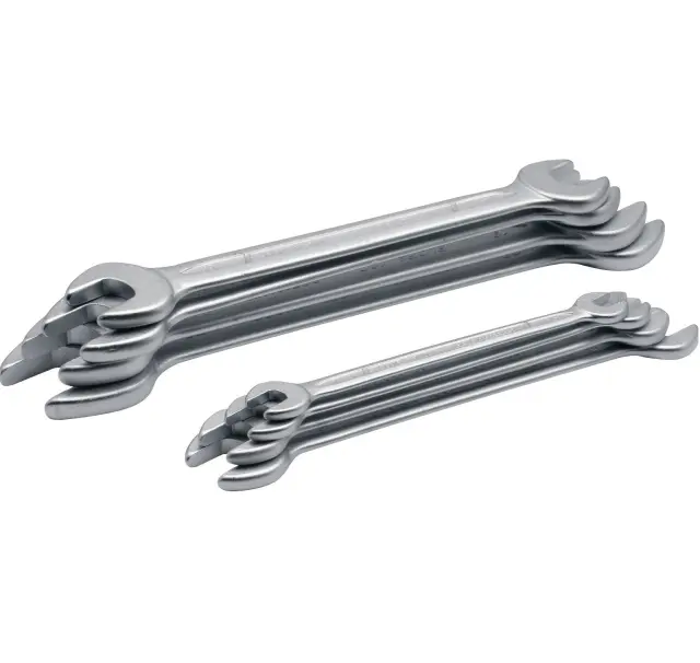 Komplet 8-delnih viličastih ključev 6 – 22 mm. Ključi so izdelani iz krom-vanadijevega jekla (CrV). kromvanadijevo legirano jeklo kromirana površina