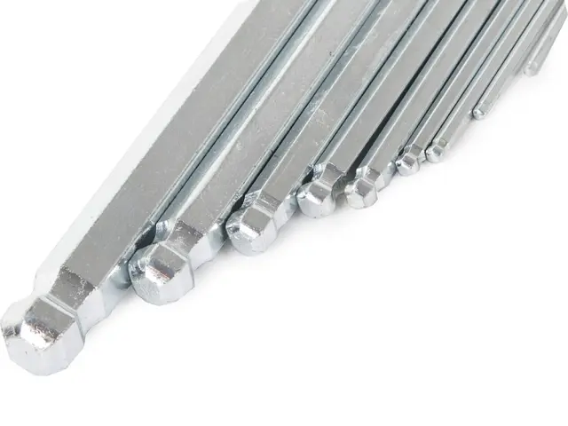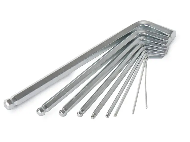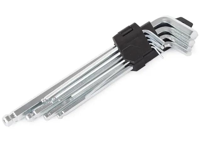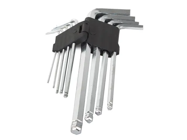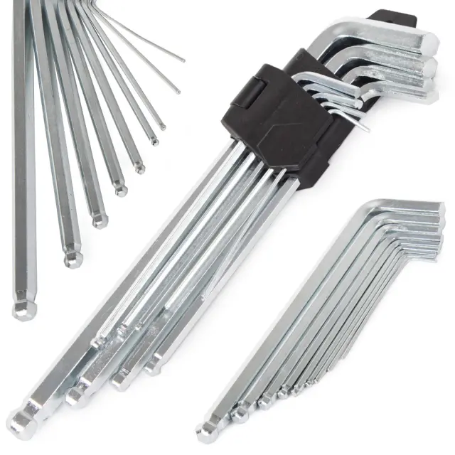 Set imbus ključev 1,5-10 mm, 9 kosov. Solidna izdelava Velikost: 1,5-2.-2.5-3-4-5-6-8-10 mm Univerzalni Kroglični ključi Srebrna barva Organizator za ključe z obeskom