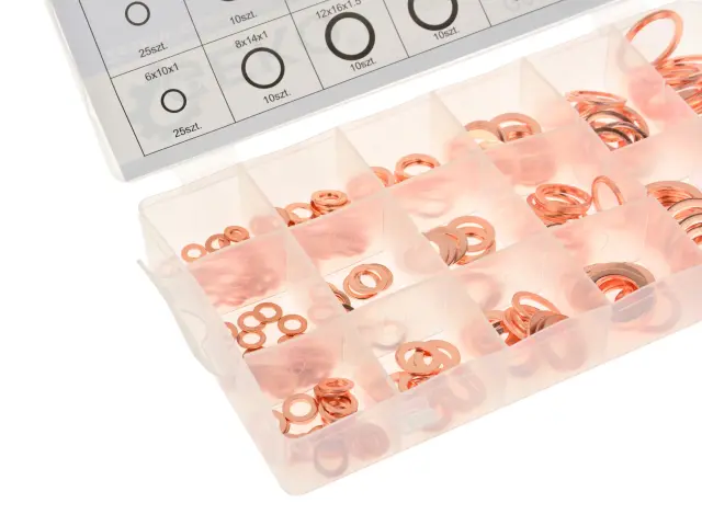 Set 220 bakrenih podložk v 16 različnih velikostih.