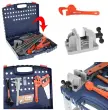 Na drugi strani kovčka so posebne luknje, ki vam omogočajo obešanje, npr. kavlji, ki so vključeni v komplet. Nanje lahko otrok namesti npr. ključi, žaga, čeljust ali drugi dodatki, ki so vključeni v kompletu. Tako boste ohranili red na delovnem mestu in otroka naučili postaviti vse na svoje mesto.