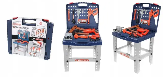 Igra v delavnici z orodji je za otroka tako priložnost za zanimivo preživljanje časa in razvijanje ročnih spretnosti, kot tudi urjenje domišljije, ki mu bo omogočilo, da se bo lažje spopadal z izzivi, ki jih bodo prednj postavljale vsakodnevne obveznosti . Igra ima zelo pozitiven učinek na razvoj otrokovih ročnih spretnosti in odlično razgiba majhne roke.