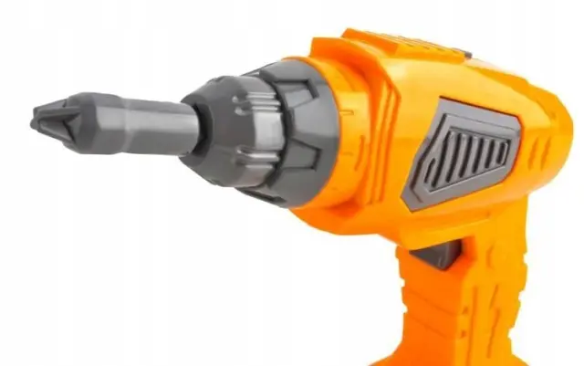 BREZŽIČNI VRTALNIK – napajanje s 3 AA baterijami (niso priložene), vrtalnik/vijačnik omogoča privijanje in odstranjevanje vijaka. V kompletu sta dva plastična trakova in dva vijaka s prekrivki, ki bodo otroku omogočili odlično zabavo!