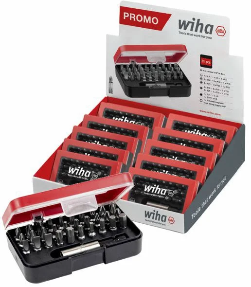 Wiha set nastavkov 44633 PH PZ TORX Flat HEX 31 kosov PHILLIPS NASTAVKI: PH1 x 2 PH2 x 3 PH3 x 1 POZIDRIV NASTAVKI: PZ1 x 2 PZ2 x 3 PZ3 x 1 PLOŠČATI NASTAVKI: SL4,5 x 1 SL5,5 x 1 SL6,0 x 1 NASTAVKI TORX: T10 x 2 T15 x 2 T20 x 3 T25 x 2 T30 x 1 T40 x 1 ŠESTOKOTNI NASTAVKI (HEX): HEX3 x 1 HEX4 x 1 HEX5 x 1 HEX6 x 1 magnetno držalo za nastavke 1/4" dolžine 60 mm KARAKTERISTIKE visokokakovostni vijačni nastavki WIHA, magnetno držalo za nastavke in adapter, vse v plastičnem kovčku s funkcionalno sponko za pas **.