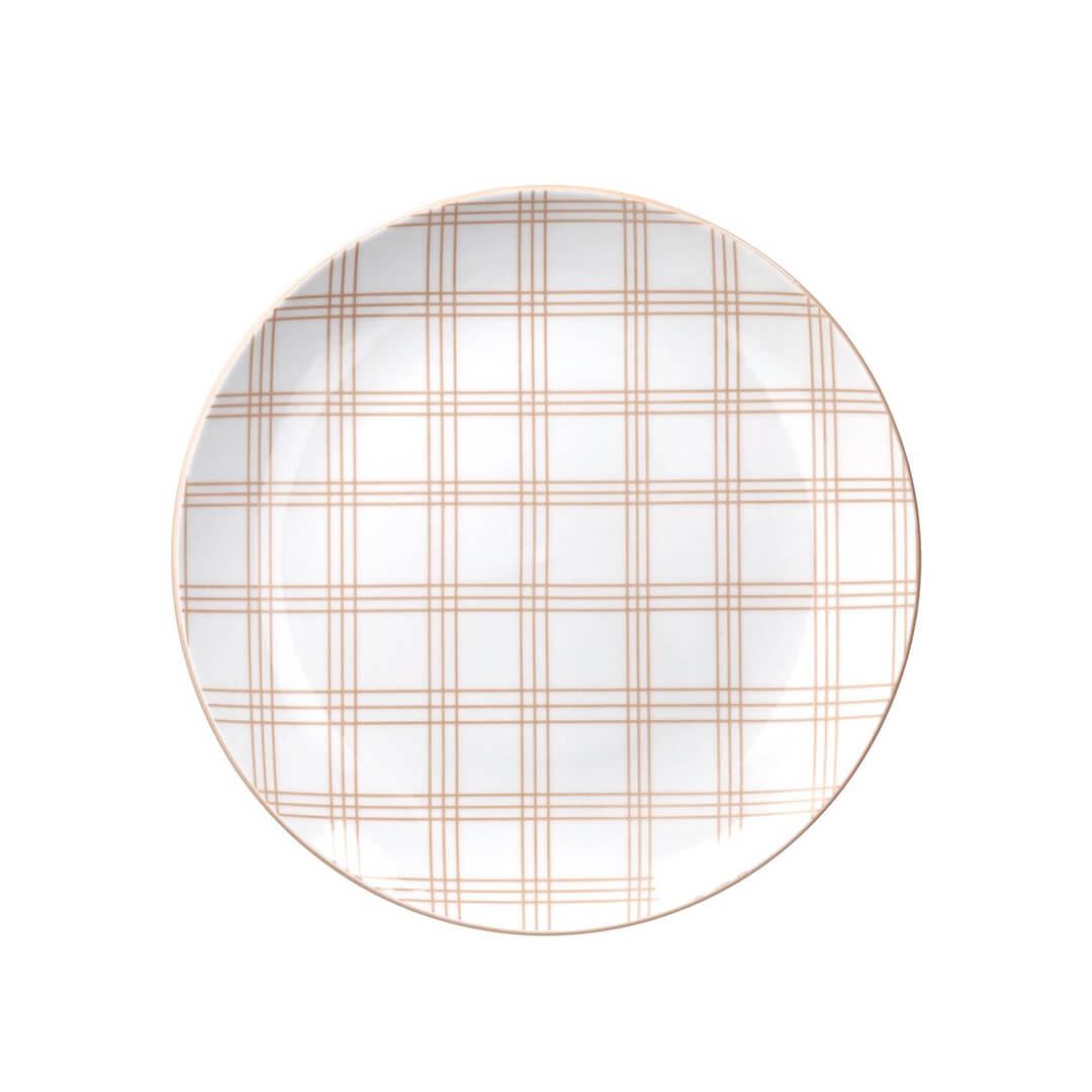 Popestrite vsak trenutek s setom 4 desertnih krožnikov Mandorla, ki je kot nalašč za dodajanje pridiha elegance vaši mizi. Prefinjeno oblikovanje z nežnim karirastim vzorcem rožnato mandljeve barve daje toplino in harmonijo ter se vsestransko prilagaja tako klasičnim kot modernim namiznim postavitvam. S premerom 19 cm so ti krožniki idealni za serviranje sladic, sadja ali manjših kulinaričnih kreacij v stilu. Zasnovani so za vsakodnevno uporabo, so praktični in funkcionalni, primerni za uporabo v mikrovalovni pečici in pomivanje v pomivalnem stroju. Popolni so za tiste, ki radi poskrbijo za vsako podrobnost na mizi, s preprostostjo in prefinjenostjo.