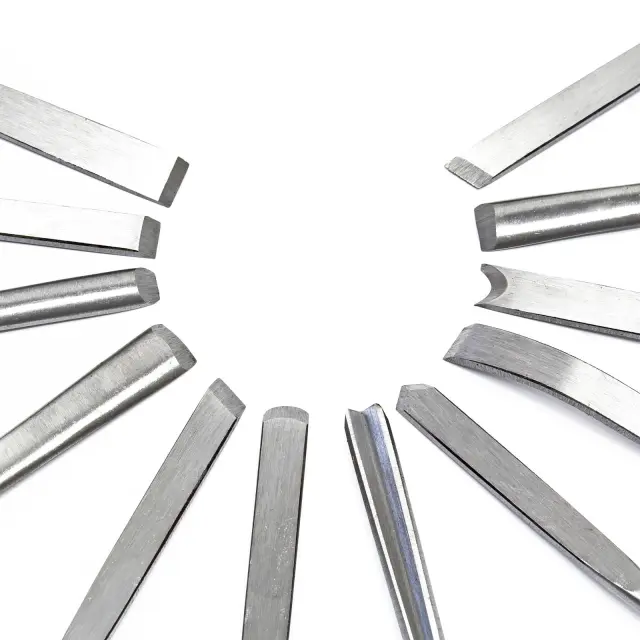 V kompletu so različne oblike rezil za različne namene.