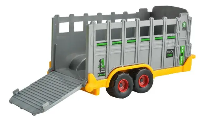 SPECIFIKACIJA – starost 3+; teža kompleta 300 g; v kompletu sta 2 traktorja, prikolica za prevoz živali, prekucnik, škropilnica in stiskalnica.